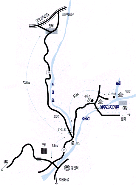 ¹Ù²ï´Ù. ÀÌ ±æÀº ¹°±æÀ» ¹Ù¸¥ÂÊÀ¸·Î ¼ÕÀâ°í °¡´Âµ¥ 9.5km¸¦ µû¶ó ¿À¸£¸é ¾Æ¿ì¶óÁö
